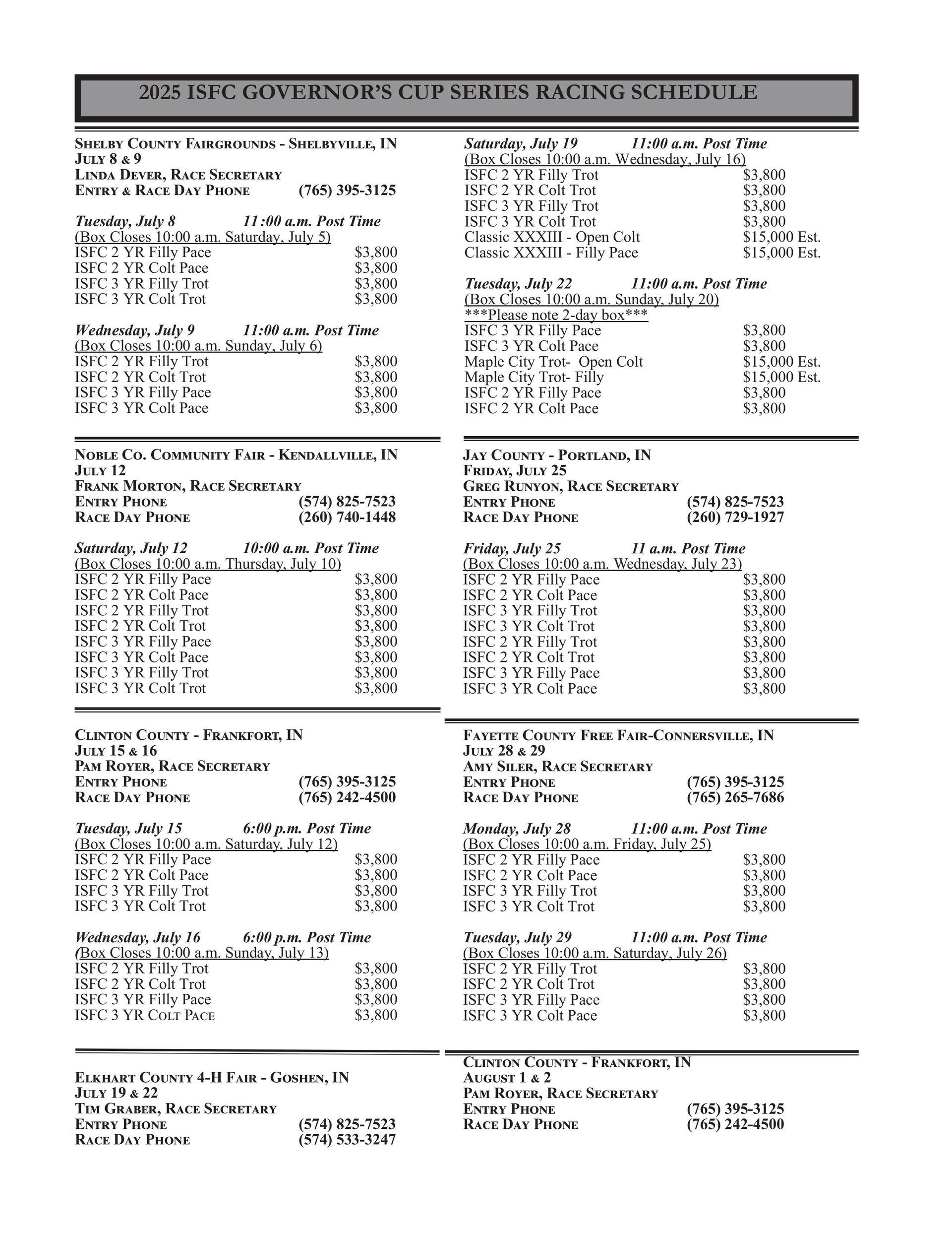 Indiana Sired Fair Circuit Calendar