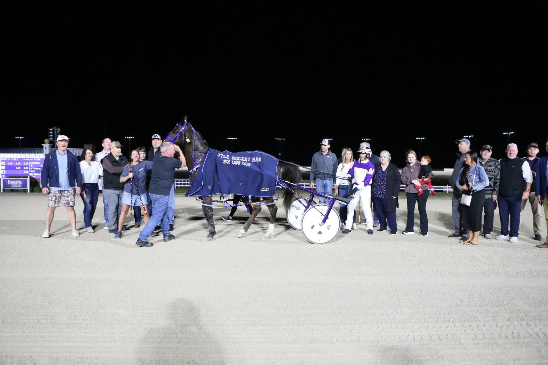 Little Rocket Man was the heavy favorite of the field, paying $2.80. He was greeted by the Ken Rucker Stable with a lightweight blanket saying “Little Rocket Man $2 Million.” A large group of well wishers joined Little Rocket Man on the track for a photo, and the 10-year-old son of Rockin Image was still on the go as a quick photo was snapped before heading back to the barn as the sport’s newest double millionaire.