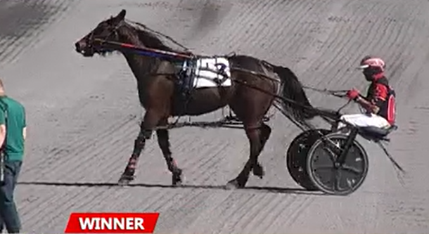 Horses were three wide in the final turn seeking to unseat Saddle Up but he dug in gamely, fending off all challengers by a neck at the wire in 1:56.1. Jackies Boy and Fern Paquet Jr. finished second over Marco Beach and Corey Braden for third.
